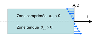 On prouvera ultérieurement que la contrainte de cisaillement est généralement négligeable devant la contrainte normale en flexion pure plane simple.
