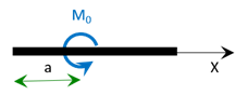 Pour un moment concentré \(M_0\) à une distance \(a\) : \(q(X_1) \; = - \; M_0 \, \langle X_1 - a \rangle^{-2}\)