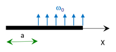 Pour une charge linéique répartie uniforme \(\omega_0\) à partir de \(a\) : \(q(X_1) \; = \; \omega_0 \, \langle X_1 - a \rangle^{0}\)